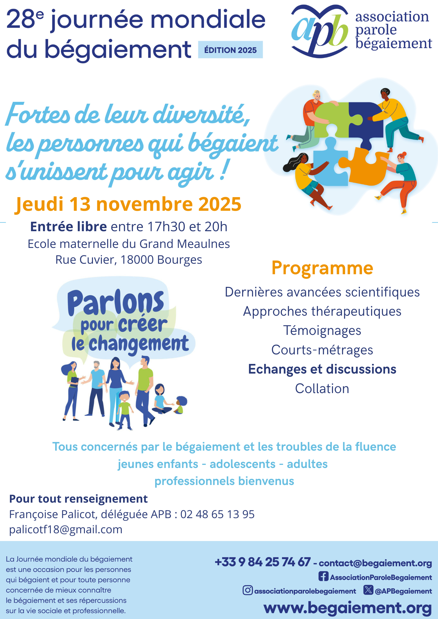 L’Association Parole Bégaiement (APB) se fait chaque année le relais de la Journée Mondiale du Bégaiement (JMB) :